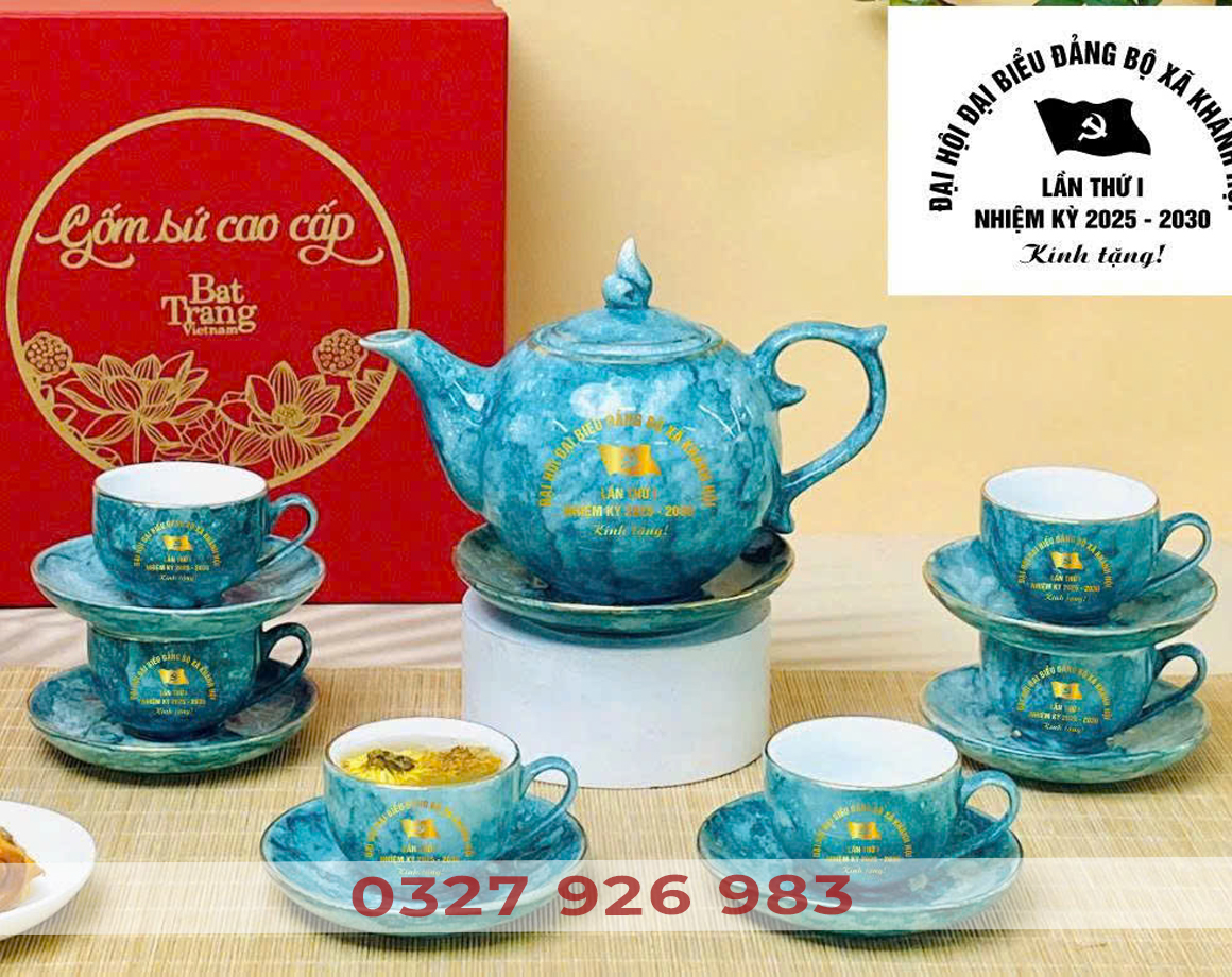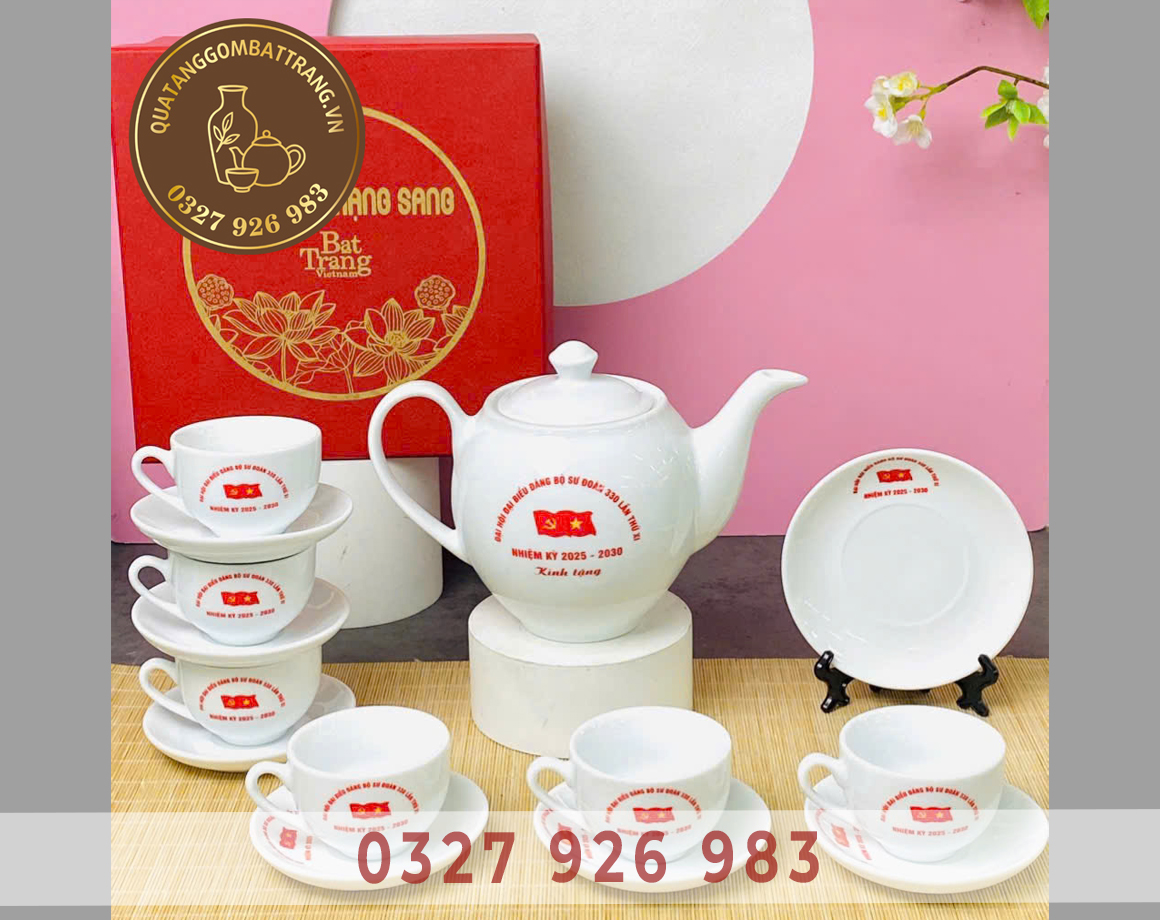 Bộ trà Bát Tràng in logo đại hội Đảng