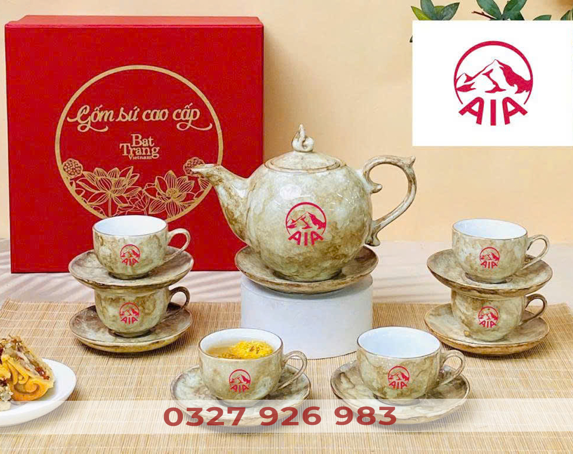 Ấm chén Bát Tràng in logo doanh nghiệp