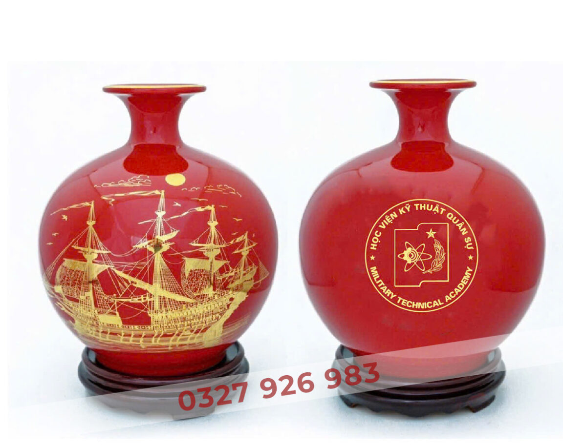 Bình hút lộc men đỏ thuận buồm xuôi gió in logo