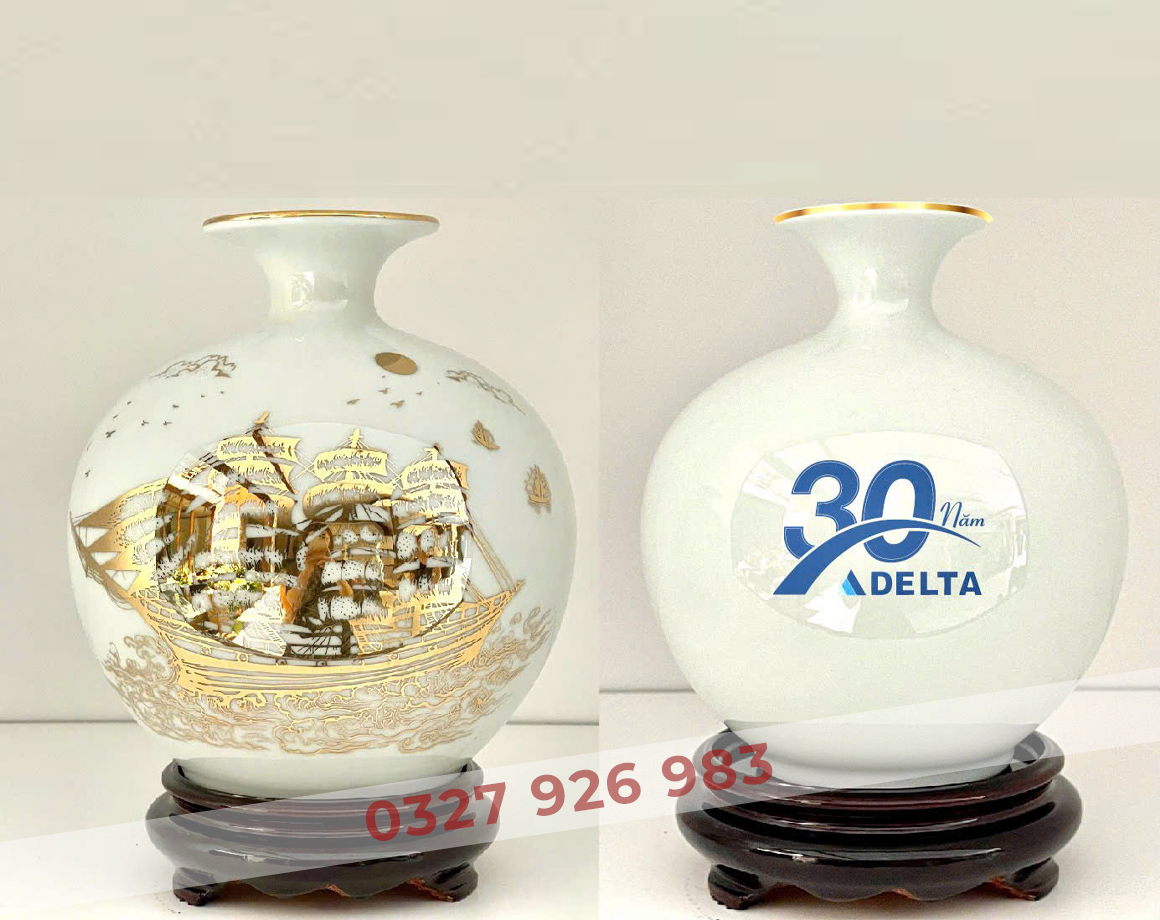 Bình hút lộc thuận buồm xuôi gió men trắng in logo