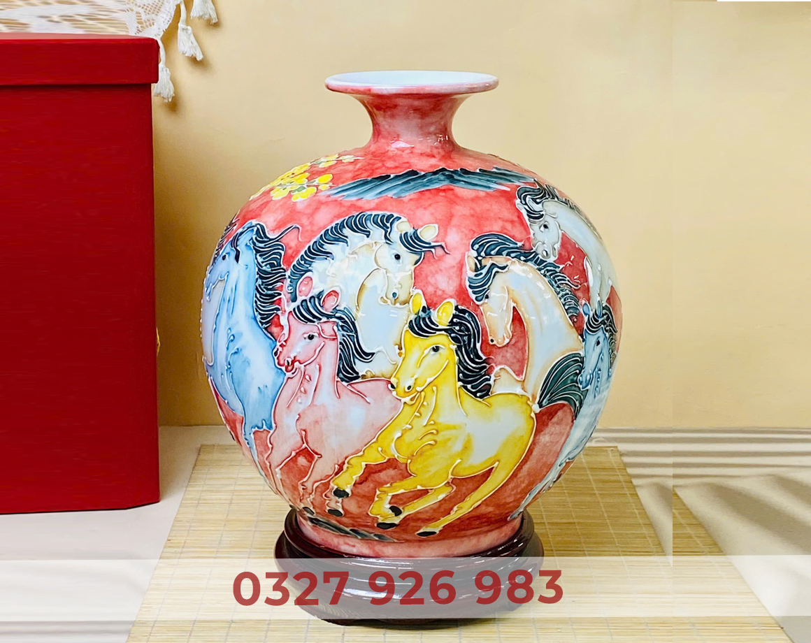 Bình hút lộc Bát Tràng vẽ mã đáo thành công