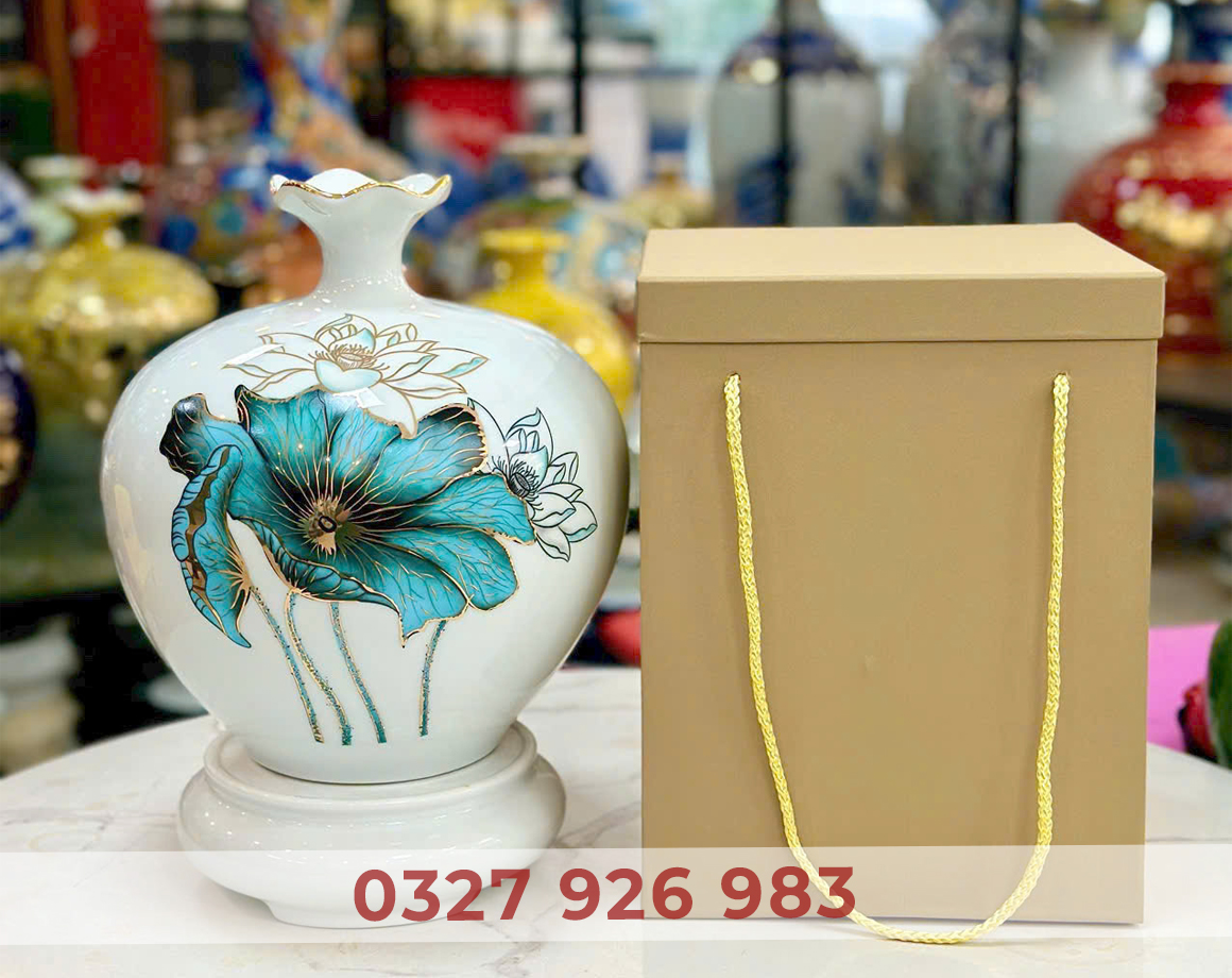 Bình hút tài lộc miệng lượn vẽ sen vàng kim