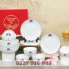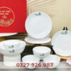 Bộ đồ ăn Bát Tràng men xanh vẽ hoa đào