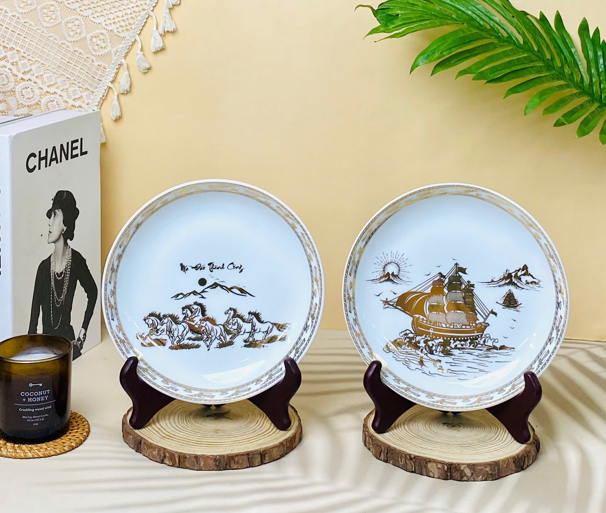 Đĩa vàng kim viền cổ trống đồng – đường kính 20cm